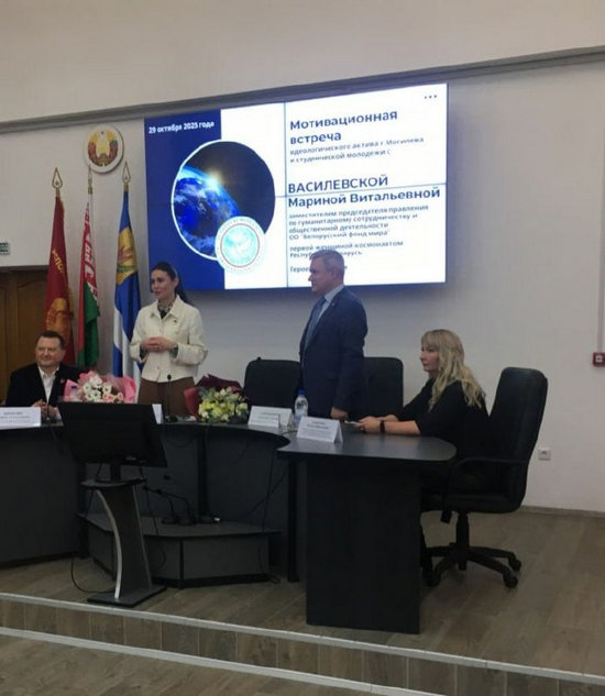 Сегодня в МГУ имени А. А. Кулешова состоялась мотивационная встреча идеологического актива города Могилева и студенческой молодежи с Василевской Мариной, заместителем председателя правления Белорусского фонда мира, первой женщиной-космонавтом Республики Беларусь, Героем Беларуси.