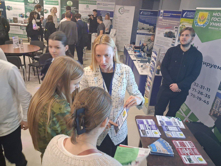 Была предоставлена возможность пообщаться с учащимися средних школ г. Борисова и Борисовского района, провести профориентационную работу. В ходе беседы учащиеся могли окунуться в атмосферу образовательной среды, узнать полезную и актуальную информацию о специальностях университета, о преимуществах обучения в МГУ имени А. А. Кулешова, о приобретении компетенций студентов при осуществлении научно-исследовательской деятельности, о перспективах, которые открываются перед выпускниками университета.