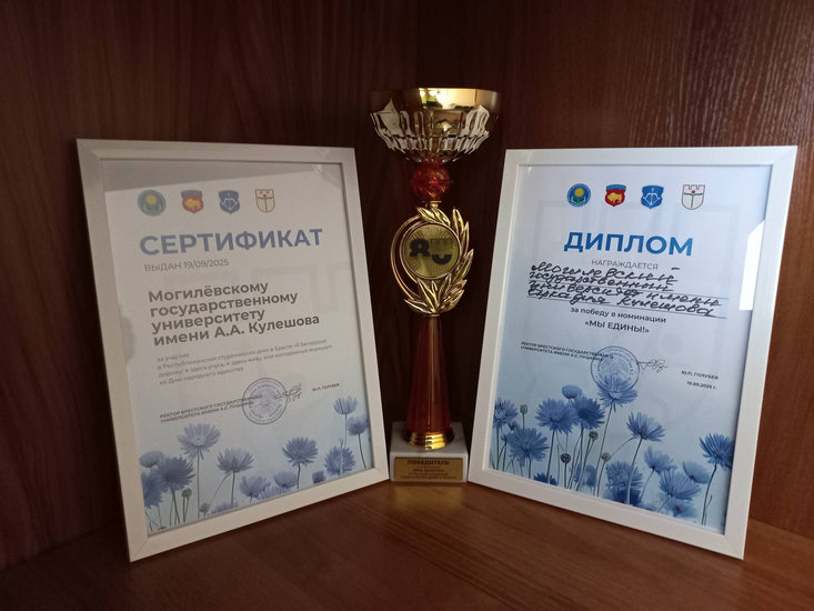 17–19 сентября 2025 года команда студентов МГУ имени А. А. Кулешова приняла участие в Республиканских студенческих днях в Бресте «Я Беларусью дорожу: я здесь учусь, я здесь живу, или молодежный воркшоп». В состав команды вошли Красикова Полина и Казакова Ангелина (студентки 3 курса специальности «Специальное и инклюзивное образование»), Котова Ирина (студентка 4 курса специальности «Психология»), Белочкина Дарья и Савушкина Ангелина (студентки 2 курса специальности «Психология»), Евмушкова Елизавета (студентка 2 курса специальности «Дошкольное образование»).