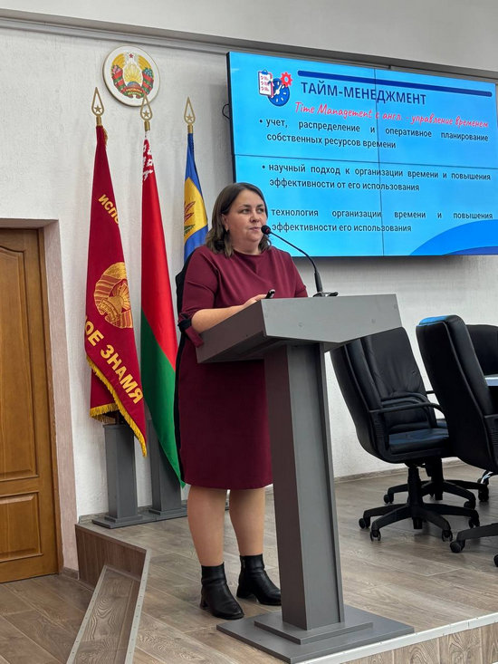 Методист отдела по идеологической и воспитательной работе Миссюревич Татьяна Александровна предложила практические советы по эффективному планированию времени инструментами тайм-менеджмента.