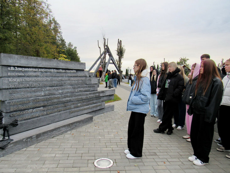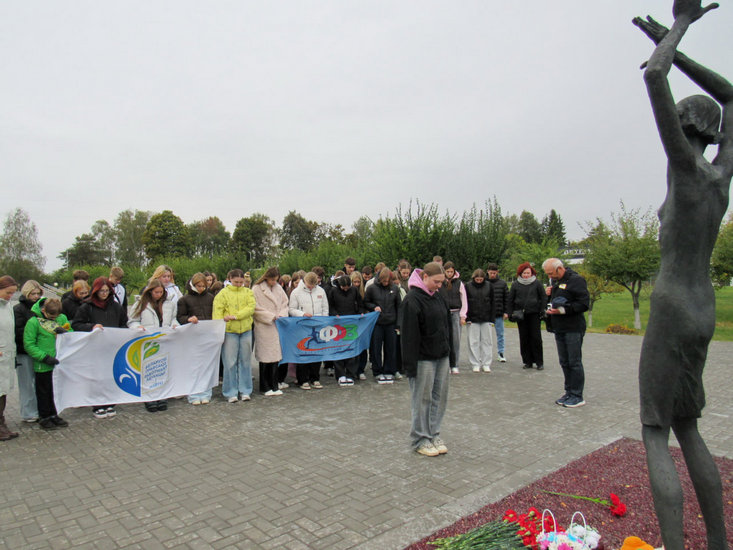 Символические образы мемориала сожжённых деревень в Борках — склонённая мать над пустой колыбелью, «колодец слёз», обожжённые стены домов с историями очевидцев — помогли студентам глубже осознать масштаб трагедии и её значение для национальной памяти. Участники почтили память тысяч мирных жителей, погибших в результате массовых карательных акций.