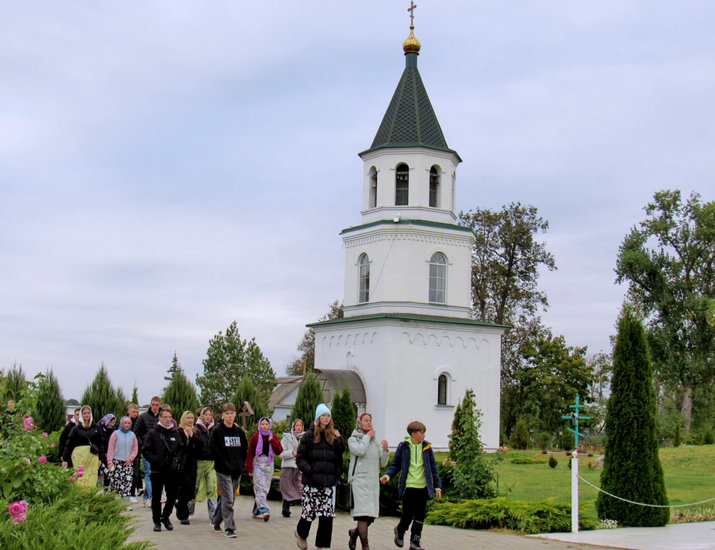 Завершающим этапом маршрута стало посещение усадьбы Козел-Поклевских и Свято-Вознесенского монастыря в Баркалабове. Студенты познакомились с архитектурным наследием XIX века, а также с историей возрождения монастыря. Монахиня Тамара рассказала о духовной жизни обители, о роли веры и духовности в жизни человека и благословила студентов на профессиональный путь.
