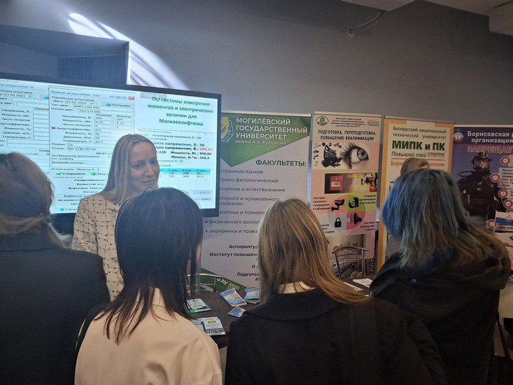 Была предоставлена возможность пообщаться с учащимися средних школ г. Борисова и Борисовского района, провести профориентационную работу. В ходе беседы учащиеся могли окунуться в атмосферу образовательной среды, узнать полезную и актуальную информацию о специальностях университета, о преимуществах обучения в МГУ имени А. А. Кулешова, о приобретении компетенций студентов при осуществлении научно-исследовательской деятельности, о перспективах, которые открываются перед выпускниками университета.